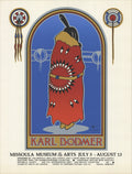 Additional Details: This serigraph exhibition poster was created by Monte Dolack for the 1977 Karl Bodmer exhibition at the Missoula Museum of the Arts. Printed in Dolack’s distinctive graphic style, the poster pays tribute to Bodmer’s celebrated frontier imagery while incorporating Dolack’s clean lines and bold color sensibility. A striking piece that connects two notable artists of the American West, it is an appealing collectible for admirers of Dolack, Bodmer, and regional museum exhibition posters of the 1970s.