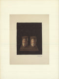 Additional Details: This framed original invitation celebrates the recent works of Jasper Johns, presented at Brooke Alexander Gallery. The invitation features Johns' artwork Two Ale Cans, symbolizing the enduring friendship between Jasper Johns and fellow artist Robert Rauschenberg. Housed in a sleek black wood frame, the piece boasts a front profile of 1 inch and a side profile of 3/4 inch, making it an elegant addition to any art collection. This invitation not only highlights the significance of the exhibition but also serves as a unique collectible that reflects the dynamic relationships within the contemporary art scene.