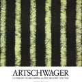 Additional Details: The original poster by Richard Artschwager from his 1989 exhibition at Leo Castelli Gallery features vertical lines of green and black, creating a texture that resembles fabric. This visual effect is a hallmark of Artschwager's work, which often explores themes of perception and materiality. Artschwager was known for his innovative approach to everyday materials and surfaces. By enlarging and reproducing textures like fabric onto canvas, he engages with the concept of "objecthood" and how we perceive and interpret common materials in new contexts. The fibrous, textured appearance challenges viewers to reconsider their understanding of surface and depth, blurring the lines between art and everyday objects. This approach aligns with Artschwager’s broader exploration of how physical and visual experiences intersect.