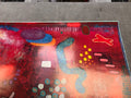 Additional Details: This original exhibition poster featuring a vibrant abstract composition by Robert Natkin was produced for a Chicago exhibition and showcases the artist’s signature color-rich, textural aesthetic. Printed full-bleed with no margins, the poster delivers an immersive field of layered reds, pinks, greens, and geometric forms—an expressive example of Natkin’s lyrical abstraction and painterly surface effects. Although the poster is not in very good condition, the wear is consistent with its age and does not detract from its historical significance as an authentic period piece. With professional conservation or restoration, it can be significantly improved while preserving its value as a collectible exhibition artifact associated with one of America’s notable abstract painters.