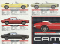 Additional Details: Technical poster featuring Chevy Camaro models from 1967 to 1993 as well as their specifications.
