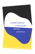 Additional Details: This is an original screen print poster by Charles Hinman titled International University Choral Festival, published by The Lincoln Center for the Performing Arts in 1965. The poster showcases Hinman's distinctive style, blending bold geometric shapes with vibrant colors, echoing his renowned work with three-dimensional shaped canvases. The design, was tied to a significant cultural event at Lincoln Center, would have aimed to capture the spirit and energy of a choral festival through abstract visual elements.