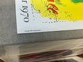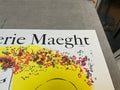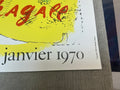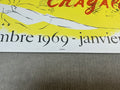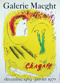 Additional Details: This exhibition poster for Marc Chagall’s solo show at Galerie Maeght, Paris (December 1969 – January 1970), was published by Maeght in 1969 and is listed as reference number 56 in Chagall's Posters – A Catalogue Raisonné by Sorlier (1975). The poster showcases Chagall’s vibrant and imaginative artistry, highlighting his signature blend of dreamlike imagery and vivid colors. Set against a bright yellow background, Chagall portrays himself in two distinct forms: his head to the left and his lower body performing a handstand to the right. The image is plate-signed in red ink, making this poster a prized collectible that commemorates a key event in Chagall’s career and the rich cultural legacy of Galerie Maeght.