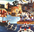 Additional Details: Image is of a painting of a local festival and parade with mermaids, artists, farmers, musicians, performers and citizen onlookers in the surrounding cityscape and landscape.