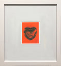 Additional Details: Heart (Lamston Candy Box) is an offset lithograph from a portfolio of five Andy Warhol prints published by te Neues, now out of print and highly collectible. Inspired by Warhol’s iconic fascination with commercial packaging and mass-produced objects, this image transforms the familiar Lamston’s candy box into a striking pop icon. By elevating a simple store-bought design into fine art, Warhol underscores his commentary on consumer culture, desire, and the beauty found in everyday objects. The work is presented in a white wood frame with a 1-inch front profile and a 3/4-inch side profile, mounted behind a 4-inch mat for a refined, gallery-quality display.