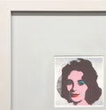 Additional Details: Liz Taylor by Andy Warhol, from a portfolio of five prints published by te Neues, now out of print. This offset lithograph reflects Warhol’s fascination with celebrity culture, portraying Elizabeth Taylor in his signature Pop style with striking graphic clarity. Presented in a white wood frame with a 1-inch front profile and a 3/4-inch side profile, the artwork is mounted behind a 4-inch mat, creating a refined, gallery-style display. Warhol’s Liz images remain some of his most iconic works, emblematic of his enduring exploration of fame, glamour, and media representation.