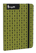Additional Details: The Magritte Foundation presents this elegant line of notebooks with a green pattern showcasing iconic Magritte figures, merging surrealist art with practical functionality. Each notebook is bound in coated paper cardboard, featuring an elastic band closure, a sewn spine that lies flat when opened, and unruled ivory-colored pages—ideal for writing or sketching. Designed with rounded corners, a ribbon bookmark, and an expandable pocket inside the back cover, each notebook is wrapped in a paper banderole for an added touch of sophistication. This set includes 5 identical notebooks, each containing 160 pages, perfect for art lovers and stationery enthusiasts alike.