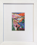 Additional Details: This framed and matted vintage poster, titled Nichols Canyon, is a reproduction of David Hockney's original painting from 1985. Published and sold by The Metropolitan Museum of Art for the David Hockney retrospective in 2003, it is not numbered and not signed. The artwork is presented in a white frame with plexi glass, and the entire frame measures 11.5" x 9.25" with a depth of 1.25". The vibrant depiction of Nichols Canyon showcases Hockney's distinctive style, characterized by bold colors and dynamic compositions that capture the essence of the Los Angeles landscape.