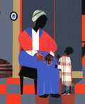 Additional Details: This reproduction silkscreen poster features Romare Bearden's vibrant work Early Carolina Morning, published by American Vision Gallery Inc. The piece has been reproduced with the permission of the Estate of Romare Bearden, ensuring its fidelity to the artist's original vision. Set against a rich background, this work captures the essence of rural life in the Carolinas, showcasing Bearden's signature style that combines elements of collage and narrative. Please note there is a small white dot in the red tile beneath the cat, a minor imperfection that does not detract from the overall impact of the piece. This reproduction is an excellent addition for collectors and admirers of Bearden’s influential art.