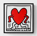 Additional Details: Keith Haring’s Untitled, 1984 depicts a heart with legs, animated in his signature vibrant style. This open edition reproduction captures the lively essence of Haring’s work, featuring bold lines and energetic movement. The piece is framed in a sleek black metal frame with a 3/8-inch front profile and a 7/8-inch side profile, giving it a modern look. Overall dimensions are approximately 11.25 x 11.25 x 7/8 inches, making it a striking addition to any space.