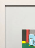 Additional Details: La Sortie is an offset lithograph by Roy Lichtenstein, created as part of a portfolio of six Lichtenstein prints published by the Guggenheim Museum and now out of print. This work exemplifies Lichtenstein’s signature Pop Art style, combining comic-strip aesthetics with bold outlines, vibrant colors, and his iconic use of Ben-Day dots. The composition captures a dramatic narrative moment, typical of his exploration of popular culture and mass media imagery. Presented in a white wood frame with a 1-inch front profile and a 3/4-inch side profile, the lithograph is mounted behind a 4-inch mat, offering a refined, gallery-style display that enhances its striking graphic presence.