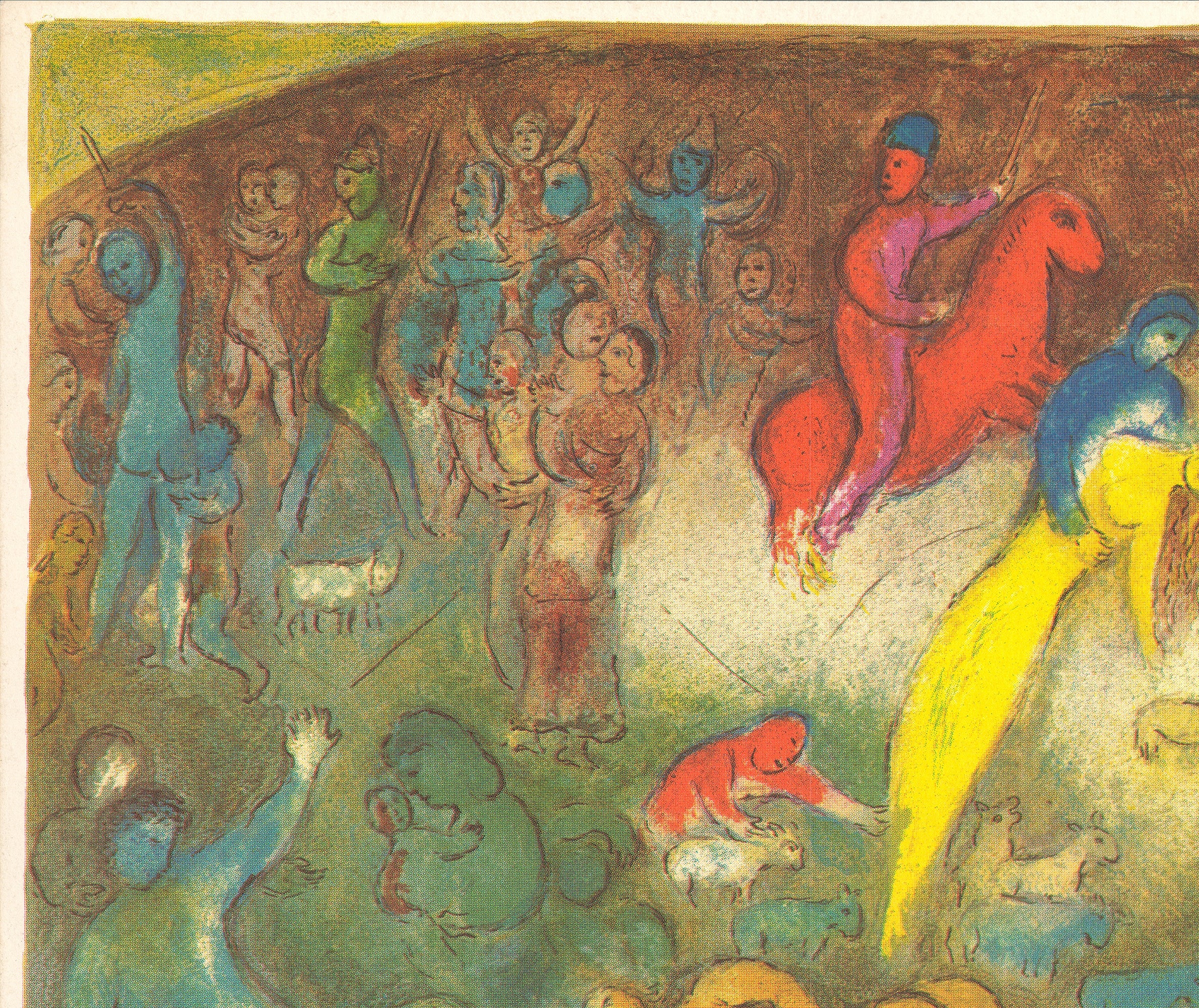 Richly printed in five colors, the lithograph offers exceptional depth and saturation, capturing the nuance and luminosity characteristic of Chagall’s palette. The printed signature—now rarely seen in contemporary reproductions—adds an additional layer of authenticity and historical charm tied to the pre-digital poster era.
