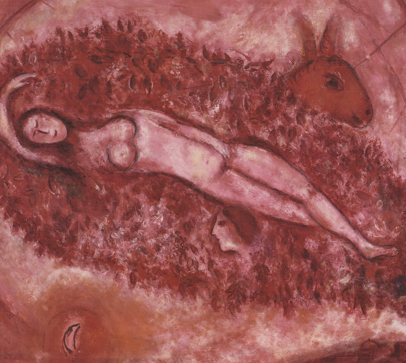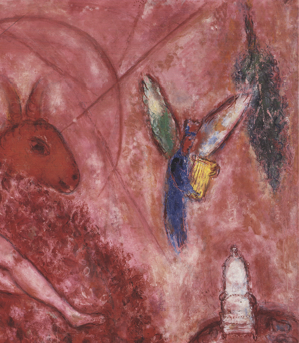 This is a reproduction of "The Song of Songs" by Marc Chagall, printed in Germany with the approval of the Chagall Foundation. "The Song of Songs" is one of Chagall’s celebrated series based on the biblical text, showcasing his signature style of vibrant colors and dreamlike, romantic imagery. The piece reflects Chagall’s deep connection to spiritual themes, particularly the themes of love and devotion, which are central to the biblical Song of Solomon.