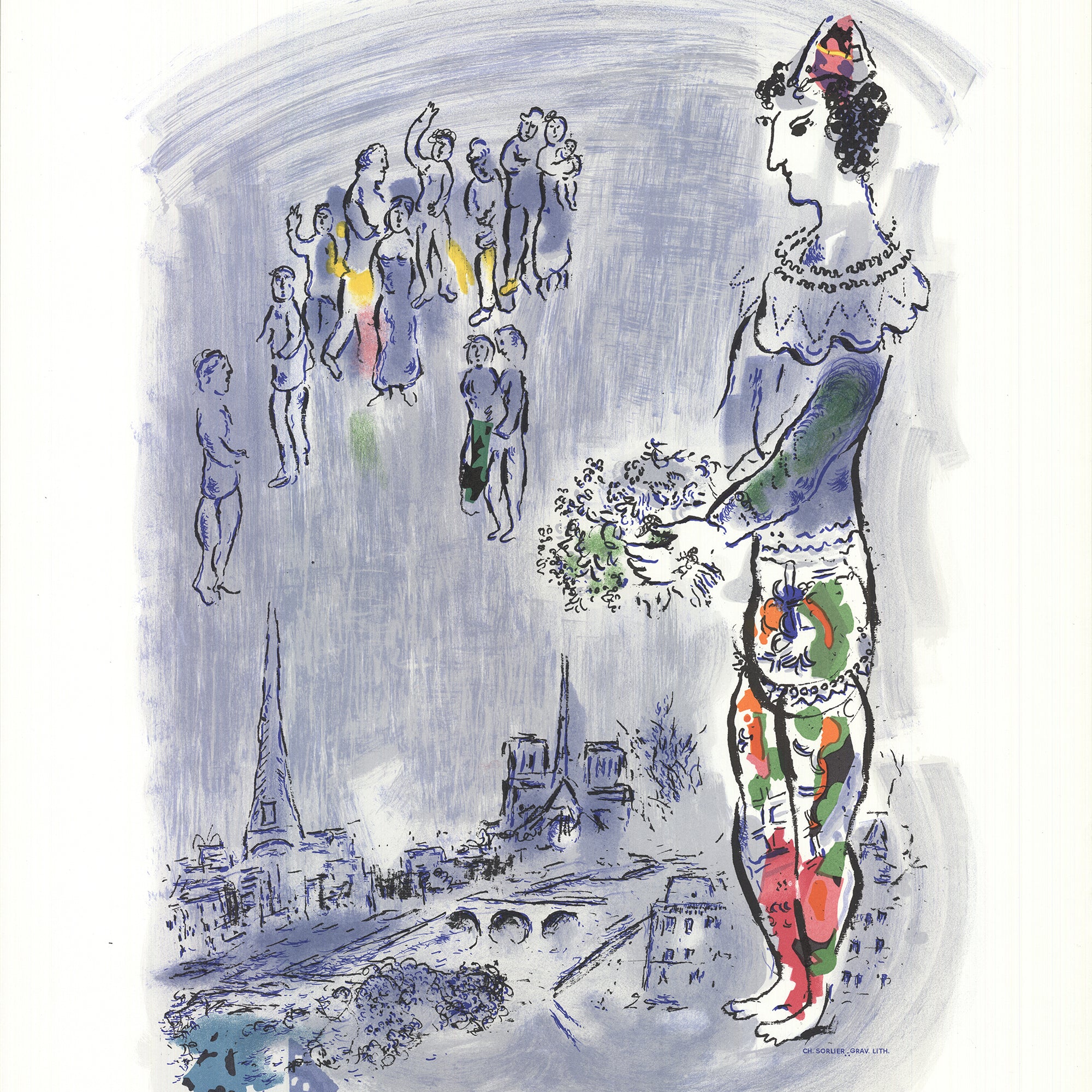 Chagall filled his scenes with flying lovers, animals, villages, and color. His work blends memory, folklore, and imagination into something playful and unforgettable.