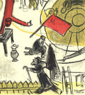 Additional Details: This poster was created for the annual exhibition "Painters, Witnesses of Their Time" at the Galliera Museum, Paris. The lithograph, derived from a detail of Marc Chagall's preparatory study for his 1937 painting "The Revolution," is infused with his childhood memories, religious themes, and reflections on the Russian Revolution. Published by Painters as Witnesses of Their Time, Paris, it is listed as reference number 92 in “Chagall's Posters - A Catalogue Raisonné” by Sorlier.