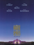 Additional Details: Original poster for the 1993 film starring Meryl Streep, Winona Ryder, Jeremy Irons, Glenn Close and Antonio Banderas. Unfolded. "House of the Spirits" is a 1993 drama film directed by Bille August, based on the novel of the same name by Isabel Allende. The film spans several generations of a Chilean family and explores themes of love, politics, and social upheaval. It features an ensemble cast including Jeremy Irons, Meryl Streep, Glenn Close, Winona Ryder, and Antonio Banderas. The story follows the lives of the Trueba family, focusing on Esteban Trueba (played by Jeremy Irons), a wealthy landowner, and his relationships with his wife Clara (played by Meryl Streep), who possesses supernatural abilities, and their daughter Blanca (played by Winona Ryder). The narrative unfolds against the backdrop of political turmoil and social change in Chile, reflecting the broader historical context of the country. "House of the Spirits" is noted for its exploration of magical realism, vivid cinematography, and powerful performances, particularly from its cast of acclaimed actors. It delves into themes of power, passion, and the consequences of personal and political decisions across generations.