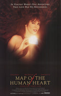 Additional Details: Original poster created for the 1993 film starring Patrick Bergin, Anne Parillaud and Jason Scott Lee. Unfolded. "Map of the Human Heart" is a 1993 romantic adventure drama film directed by Vincent Ward. It stars Jason Scott Lee as Avik, an Inuit boy who befriends a half-Russian, half-Inuit girl named Albertine, played by Anne Parillaud. The film spans several decades and follows Avik's journey from the Canadian Arctic to Europe during World War II. It explores themes of love, loss, and the impact of war on personal and cultural identity.