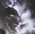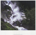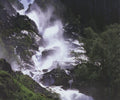 Additional Details: This photograph portrays the impressive Latefossen waterfall, known for its twin streams that cascade dramatically down a rock face near Odda, Norway. The scene often captures the powerful flow of water amidst scenic Norwegian landscapes, showcasing the natural beauty of the region.