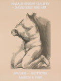 Additional Details: This original exhibition poster, created for Jim Dine's show at the Natalie Knight Gallery in South Africa, features his iconic work "Drawing 26." Known for his emotionally charged and expressive style, Dine explores themes of identity, memory, and personal symbolism. "Drawing 26" reflects his distinctive use of bold imagery and gestural linework, blending figurative forms with psychological depth. This poster not only commemorates a significant international exhibition by one of America’s foremost contemporary artists, but also highlights the global reach of his work. A rare and collectible piece from the late 20th century, it offers a striking example of Dine’s contribution to modern and graphic art, bridging personal narrative with universal human experience.