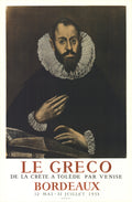 Additional Details: This original lithograph poster was created for an El Greco exhibition held in Bordeaux in 1953 and masterfully reproduced by the artisans at Mourlot Atelier. The poster features The Nobleman with His Hand on His Chest, one of El Greco’s most celebrated portraits, capturing a noble figure dressed in black with a lace collar. This recreation meticulously replicates the intensity of the black tones as if taken directly from El Greco’s palette, adding depth to the mysterious subject, often speculated to be Juan de Silva y Ribera, Marquess of Montemayor. The Mourlot Atelier’s craftsmanship and attention to detail make this poster a striking tribute to El Greco’s expressive style and historical impact.