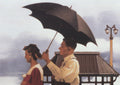 Additional Details: This is a reproduction of Jack Vettriano's painting titled The Shape of Things to Come. The scene captures a timeless and romantic moment as a woman leads the way on a boardwalk, with her man following closely behind, covering her with an umbrella. The setting features vintage lighting, enhancing the nostalgic atmosphere. This reproduction is perfect for adding a touch of romance and elegance to various interior spaces. Its captivating and nostalgic qualities make it a wonderful choice for living rooms, bedrooms, or even hallways, where it can create a warm and inviting atmosphere.