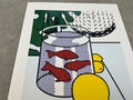 Additional Details: This is a reproduction of Still Life with Goldfish by Roy Lichtenstein, originally included in a portfolio of six prints published by the Guggenheim Museum in 1993. The piece showcases Lichtenstein's iconic Pop Art style, blending bold outlines, flat colors, and Ben-Day dots to reinterpret the traditional still life genre with a modern twist. This reproduction reflects the artist’s playful approach to form and color, characteristic of his work from the later part of his career.