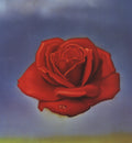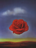 Additional Details: This is a reproduction of Salvador Dalí's "Meditative Rose", painted in 1958, is a captivating oil on canvas measuring 36 x 28 cm. The artwork features a vibrant red rose suspended against a serene blue sky, casting a subtle shadow over a barren landscape below. This composition invites viewers to explore themes of beauty, transcendence, and introspection. The rose, often a symbol of love and beauty, is presented in a surreal context, encouraging contemplation of its deeper significance.