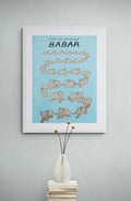 Additional Details: This delightful reproduction of Babar's Blue Carousel captures the whimsical charm of Babar the Elephant, one of the most beloved characters in children's literature. The image depicts a joyful scene where little Babar and his companions form a carousel-like spiral, holding each other's tails as they dance in a lively, circular motion. The scene is infused with a sense of playfulness and innocence, evoking the timeless joy of childhood. The gentle, swirling motion of the carousel creates a sense of movement and joy, making it a captivating piece for both children and adults alike. Babar's Blue Carousel is a tribute to the enduring legacy of Babar, created by Jean de Brunhoff in 1931, inspired by the bedtime stories his wife, Cécile, told to their children. Since his inception, Babar has become an international sensation, with the Babar books selling millions of copies worldwide and inspiring numerous television programs and films.
