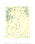 Additional Details: This reproduction of the lithograph titled Maternity depicts a tender and intimate moment between a mother and her newborn child, with the mother holding the infant closely. Originally created by Pablo Picasso in 1901 during his Blue Period, this reproduction was published in 1996. The lithograph captures the poignant emotions and delicate bond of maternal love, reflecting Picasso’s early exploration of themes related to human vulnerability and affection.