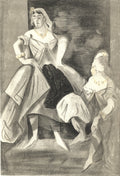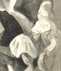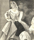 Additional Details: Les Femmes dans l'Atelier is a lithograph by Lena Leclercq from Verve Vol. II Magazine No. 5/6. It continues her exploration of elegant, historical fashion, depicting women in sophisticated attire that conveys grace and timelessness. The piece highlights Leclercq's meticulous attention to detail and her unique approach to capturing the essence of elegance in art.