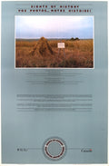 Additional Details: From the National Film Board of Canada’s acclaimed Sights of History exhibition, this original poster features Mary Neufeld’s “Wheat Plaque, Lunenberg County, Nova Scotia.” The image captures a humble yet striking agricultural scene: a neatly gathered wheat stack standing in an open field, accompanied by a small informational plaque that emphasizes the region’s farming heritage. Presented in both English and French, the poster reflects Canada’s bilingual cultural identity and the NFB’s mission to document everyday life across the country through the lens of local photographers. The soft dusk light, expansive horizon, and understated composition evoke a sense of quiet rural history and place. Printed on high-quality stock with the Sights of History seal and official Government of Canada markings, this piece stands as both a visual document and a collectible artifact of Canadian photographic history. Ideal for collectors of vintage posters, documentary photography, or Canadian cultural ephemera.